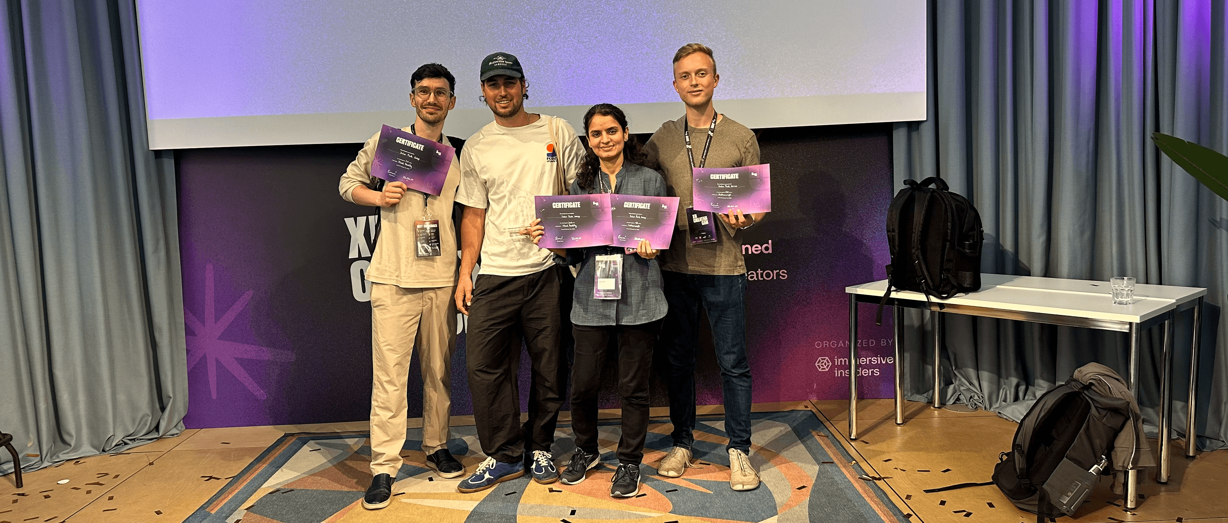 We won in 2 categories at the #XRCC, Europe's biggest XR hackathon! One for the Best Use of #Mattercraft (a cool #WebXR tool) and second for the Best App in #Meta's Mixed Reality Track.